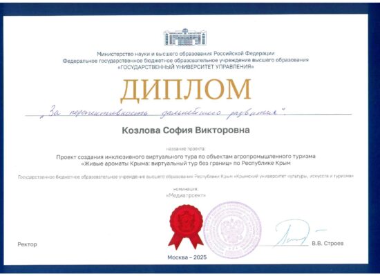 Студентка КУКИиТ стала призёром всероссийского конкурса с проектом инклюзивного тура по Крыму