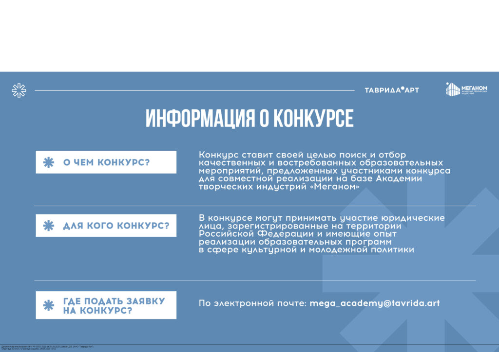 Академия творческих индустрий «Меганом» объявляет о проведении конкурса для партнерских организаций на реализацию образовательных мероприятий в 2026 году
