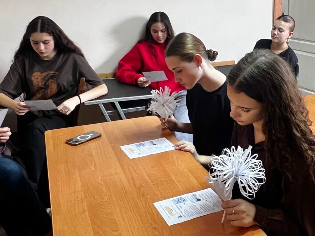 В Театральном колледже Университета учащиеся также не остались равнодушными к этому событию. На уроке, посвященном благотворительной акции, ребята подготовили инсталляции из белых бумажных цветов, напомнив всем о важности добрых дел, которые преображают судьбы людей.