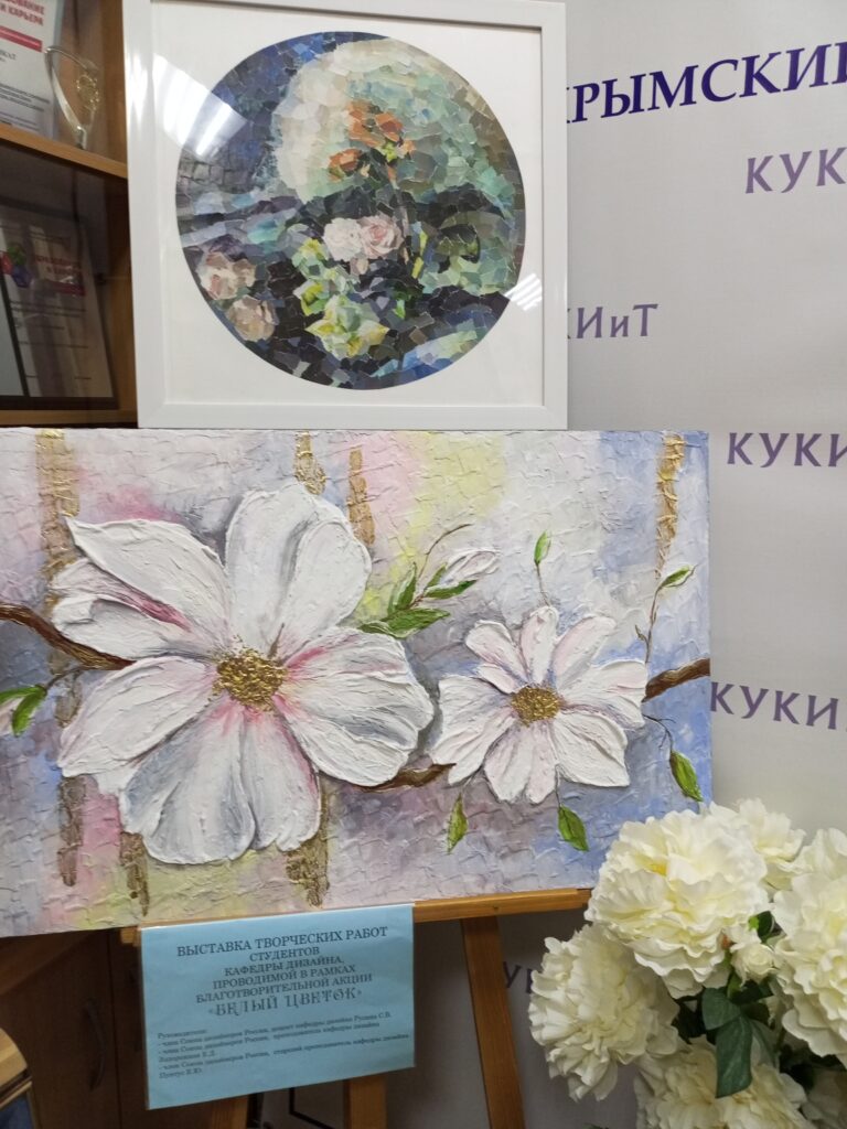 Студенты кафедры дизайна организовали тематическую выставку «Белый цветок». В каждой из представленных на выставке работ была отражена чистота и душевный посыл ребят, которые старались средствами изобразительного искусства поведать о важности благородной миссии – помогать нуждающимся людям.