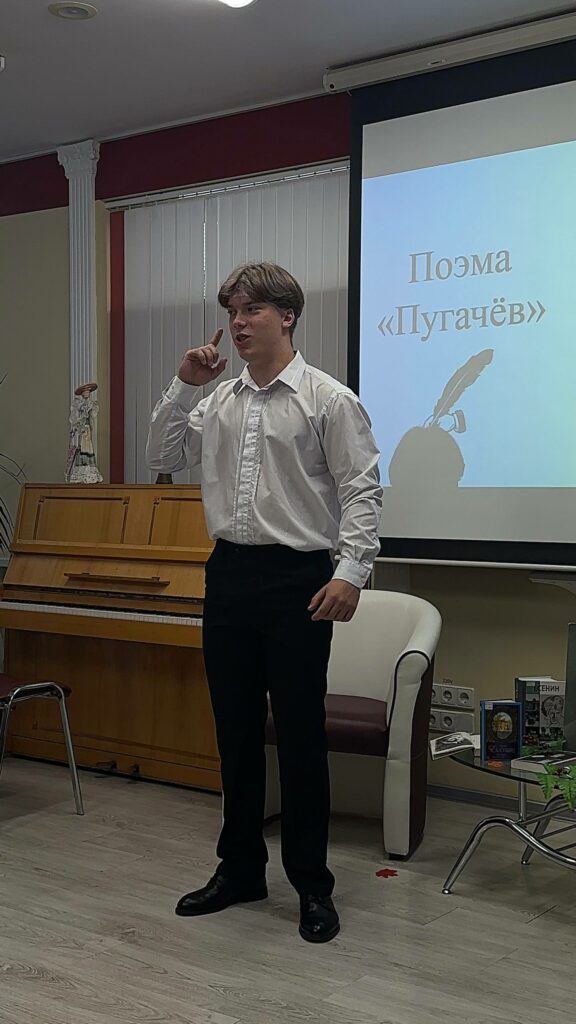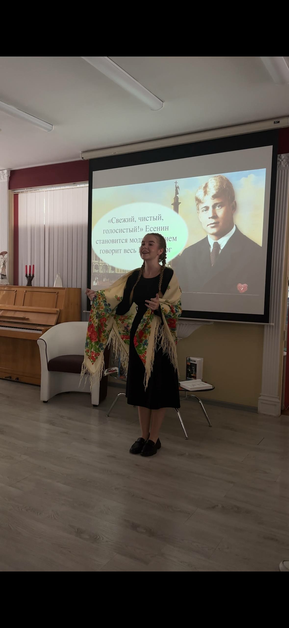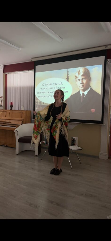 Полина Кравчук, Владимир Барладян и Елизавета Ловчикова прочитали стихотворения поэта: «Хороша была Танюша», отрывок из поэмы «Пугачев», «Я спросил сегодня у менялы…». В ходе мероприятия зрителей познакомили с жизнью и творчеством знаменитого писателя, его богатым литературным наследием. На протяжении всего вечера звучали не только стихи С. Есенина, но и музыкальные произведения композиторов  В. Володина, Г. Струве, Г. Свиридова. Видеопрезентация и демонстрация отрывков из кинофильма «Есенин» помогли участникам мероприятия глубже погрузиться в чарующий мир поэзии, природы и жизни русского гения.