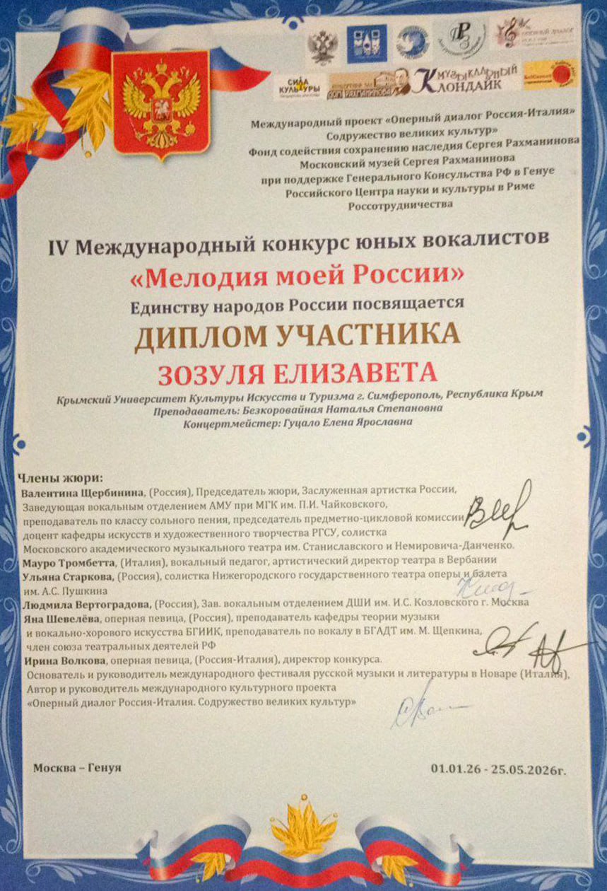 Елизавета Зозуля представила Крым на престижном вокальном конкурсе
