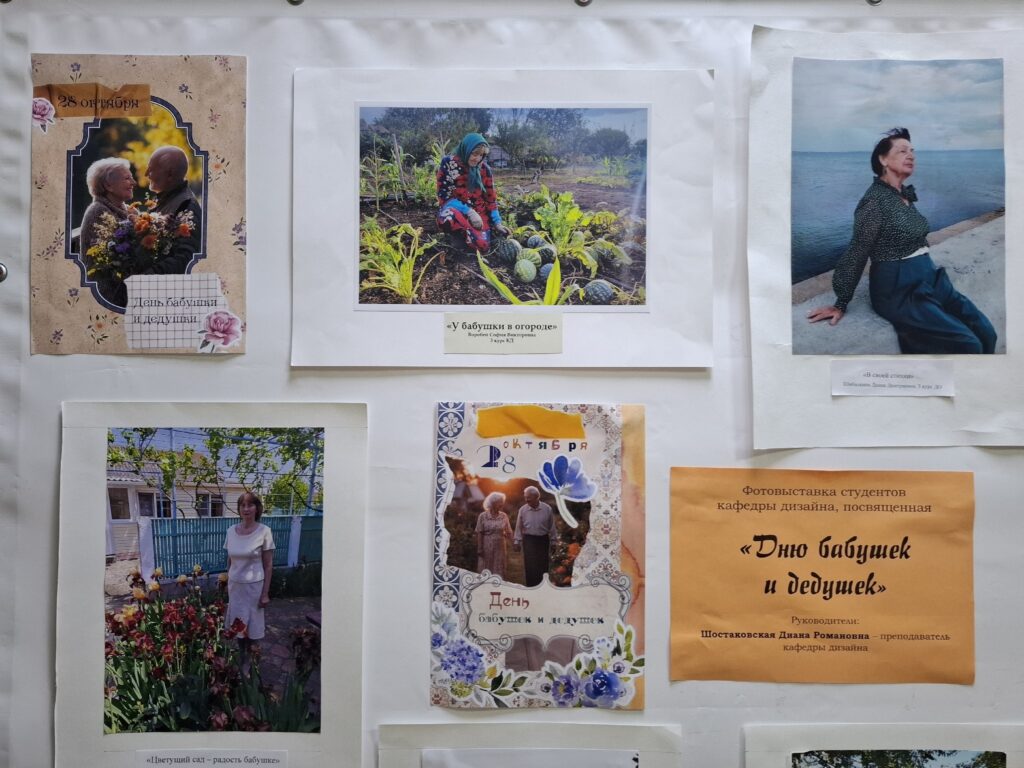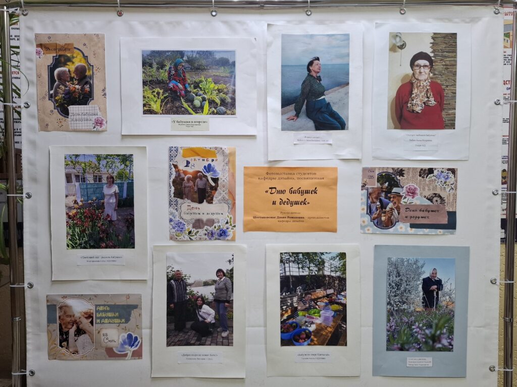 К празднику присоединилась кафедра дизайна Крымского университета культуры, искусств и туризма. Студенты кафедры подготовили особую творческую акцию — фотовыставку, посвящённую своим родным. На экспозиции представлены портреты бабушек и дедушек обучающихся, запечатлённые через призму художественного взгляда молодых дизайнеров. Каждый снимок — это не просто фотография, а искренний рассказ о семейных ценностях, тёплых воспоминаниях и неразрывной связи поколений.