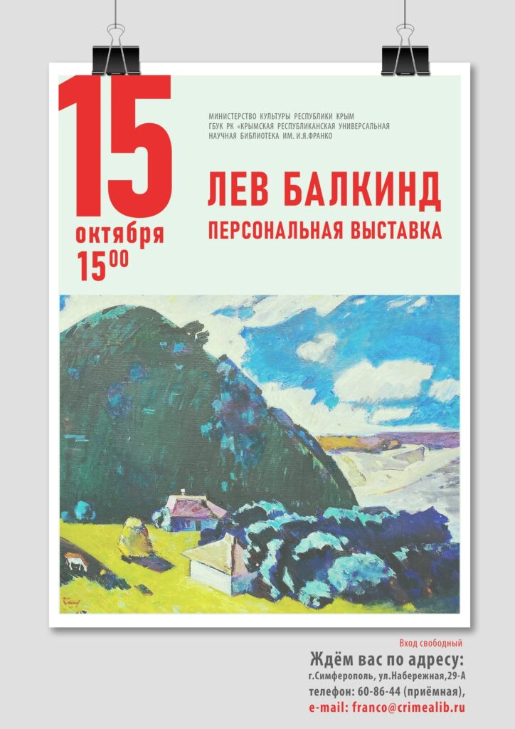 В отделе документов по искусству Крымской республиканской универсальной научной библиотеки им. И. Я. Франко состоялось открытие персональной выставки выдающегося крымского художника, лауреата Государственной премии Республики Крым, заслуженного деятеля искусств Украины Льва Владимировича Балкинда. На вернисаже присутствовали преподаватели и студенты кафедры дизайна Крымского университета культуры, искусств и туризма – учреждения, с которым художник тесно связан на протяжении многих лет.