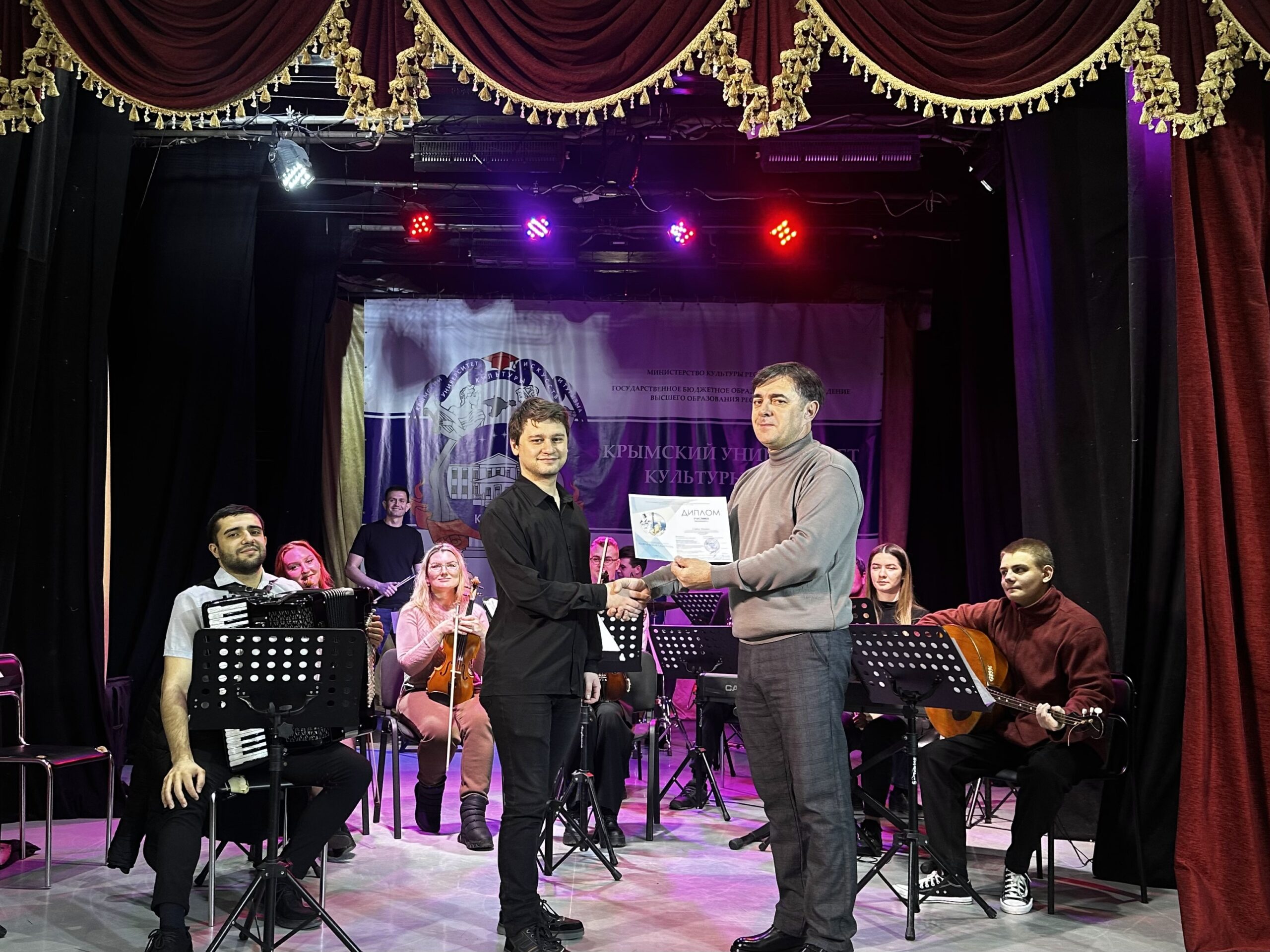 Торжественное награждение провели председатель жюри, заведующий кафедрой музыкально-инструментального искусства КУКИиТ Руслан Нюсретович Карасанов и член жюри Наталия Валериевна Тимошенко, директор Симферопольского музыкального училища им. П.И. Чайковского.