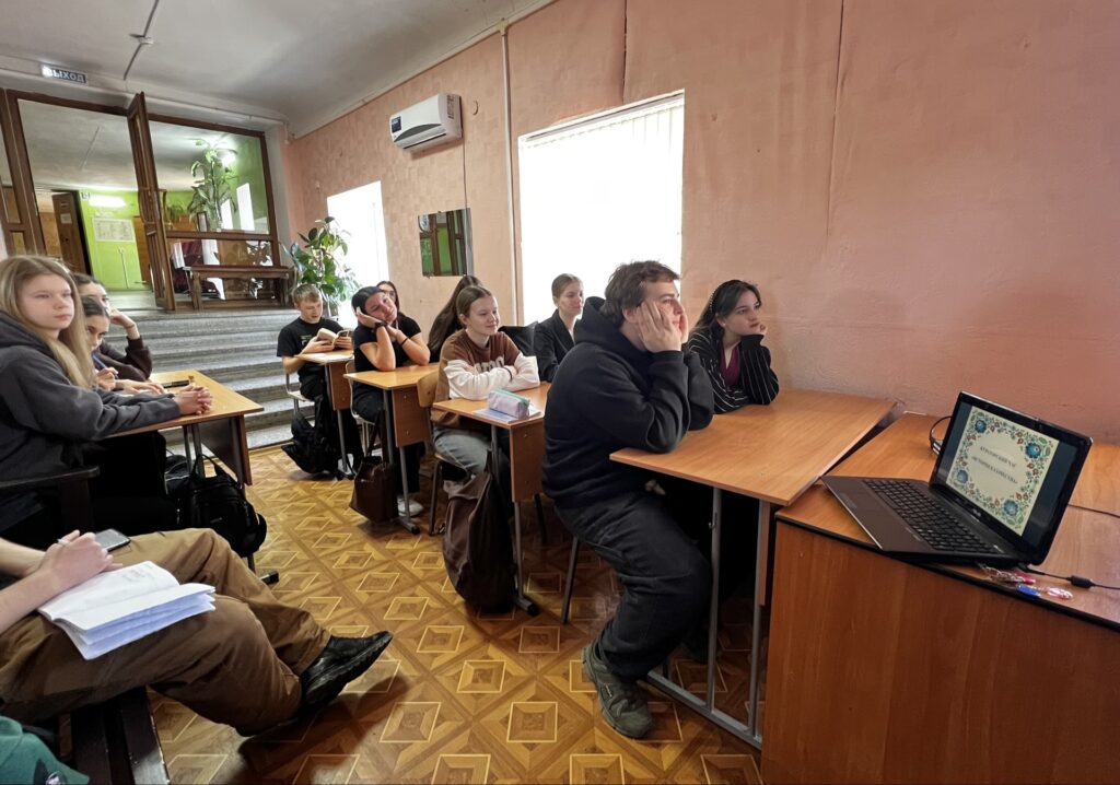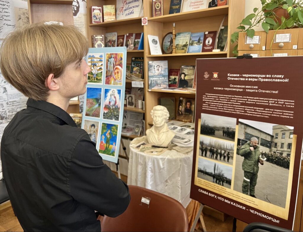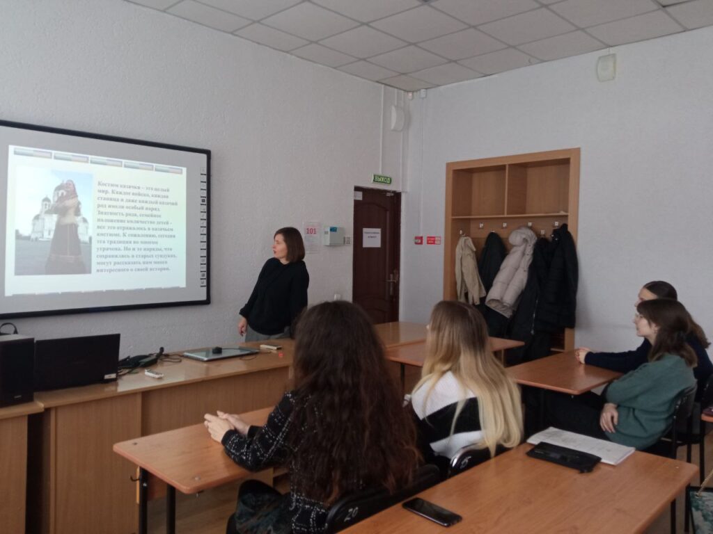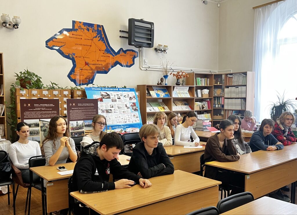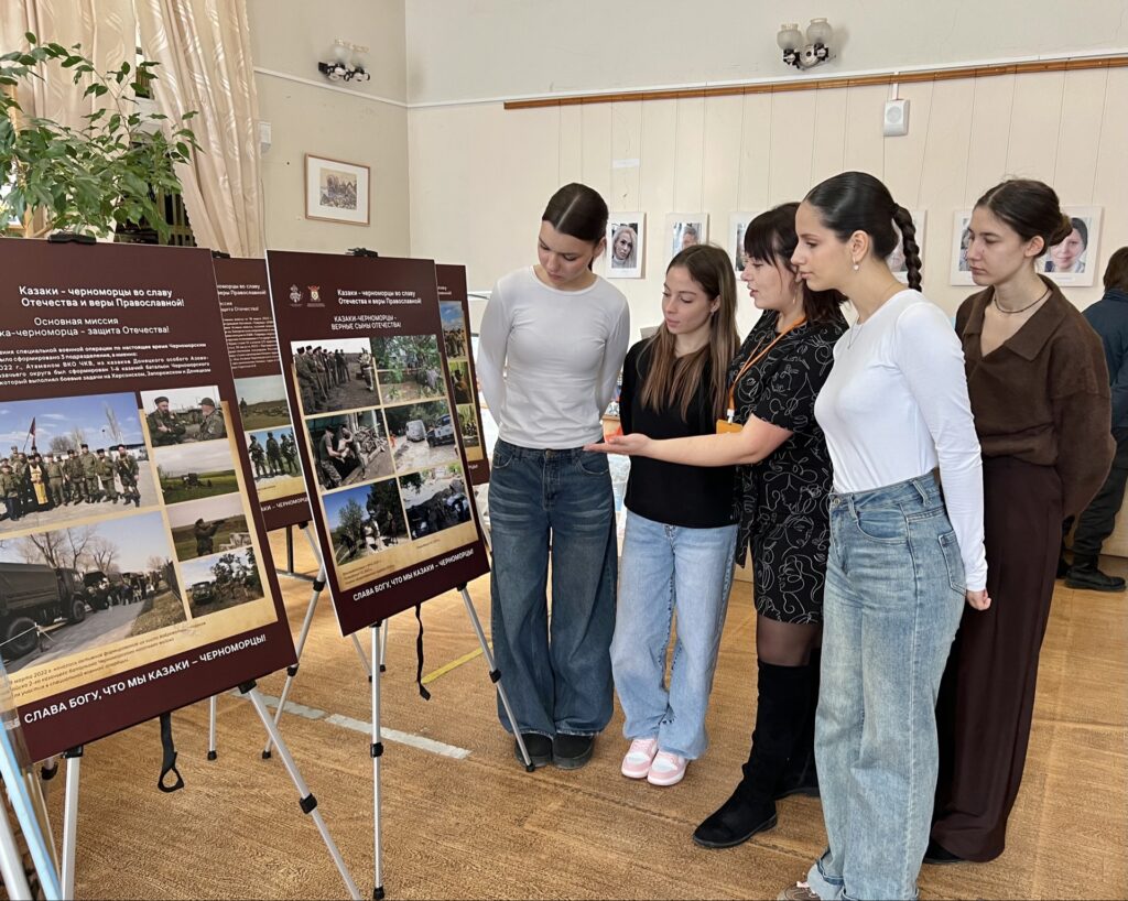 В рамках реализации государственной Стратегии по развитию казачества в университете прошли тематические мероприятия. Организованная для учащихся Театрального колледжа экскурсия в Центральной городской библиотеке им. А.С. Пушкина была приурочена к 237-летию Черноморского казачьего войска. Студенты посетили выставку под названием «Черноморское войско, вперед!», где познакомились с богатым наследием казачьей культуры. Параллельно с этим для обучающихся университета прошли тематические кураторские часы на тему «Российское казачество». Мероприятия направлены на реализацию плана развития казачьей культуры в Крыму в период 2024-2026 годов. Инициатором проведения образовательных мероприятий выступила помощник ректора по воспитательной работе Я.В. Нечипуренко.