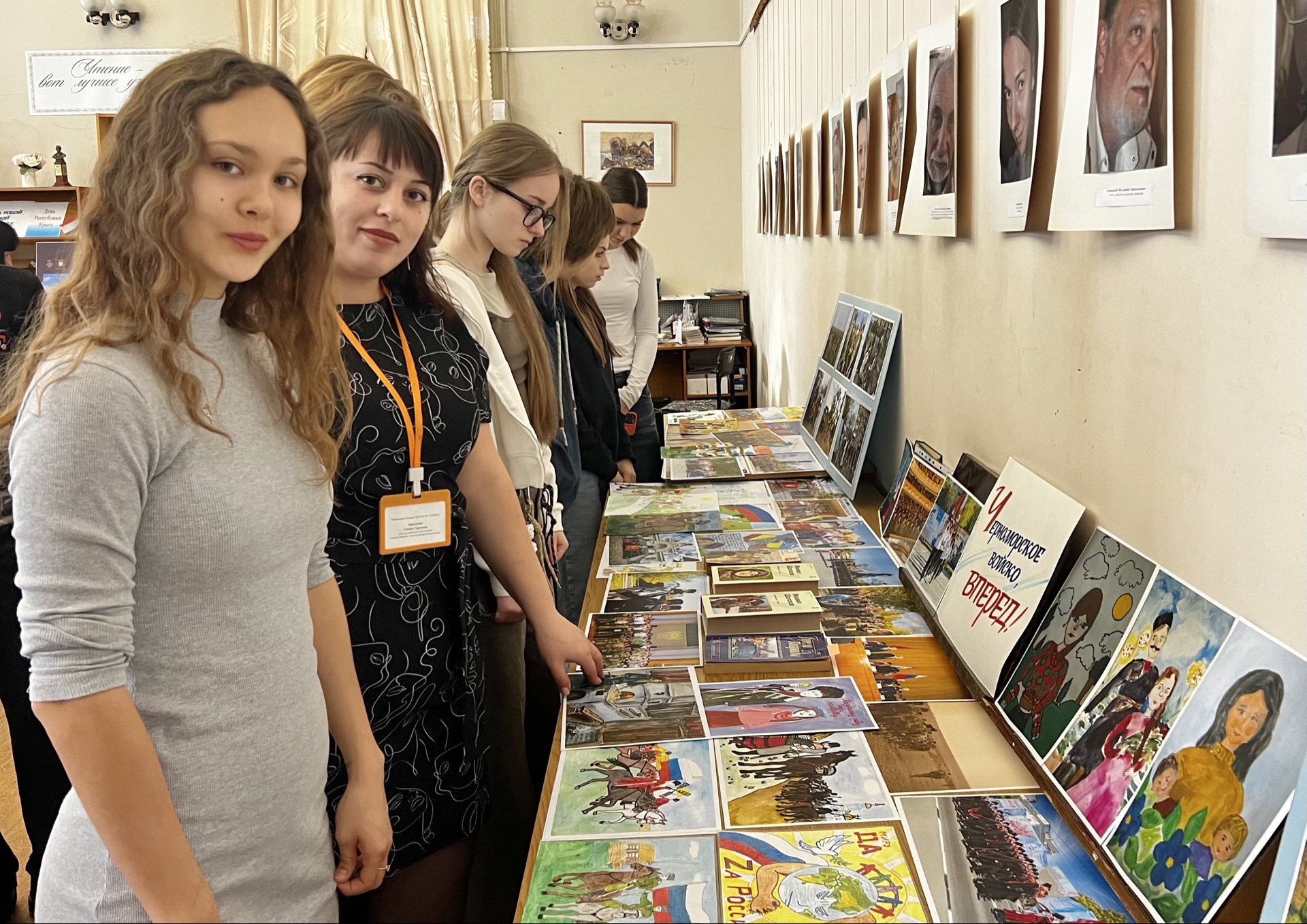 В рамках реализации государственной Стратегии по развитию казачества в университете прошли тематические мероприятия. Организованная для учащихся Театрального колледжа экскурсия в Центральной городской библиотеке им. А.С. Пушкина была приурочена к 237-летию Черноморского казачьего войска. Студенты посетили выставку под названием «Черноморское войско, вперед!», где познакомились с богатым наследием казачьей культуры. Параллельно с этим для обучающихся университета прошли тематические кураторские часы на тему «Российское казачество». Мероприятия направлены на реализацию плана развития казачьей культуры в Крыму в период 2024-2026 годов. Инициатором проведения образовательных мероприятий выступила помощник ректора по воспитательной работе Я.В. Нечипуренко.