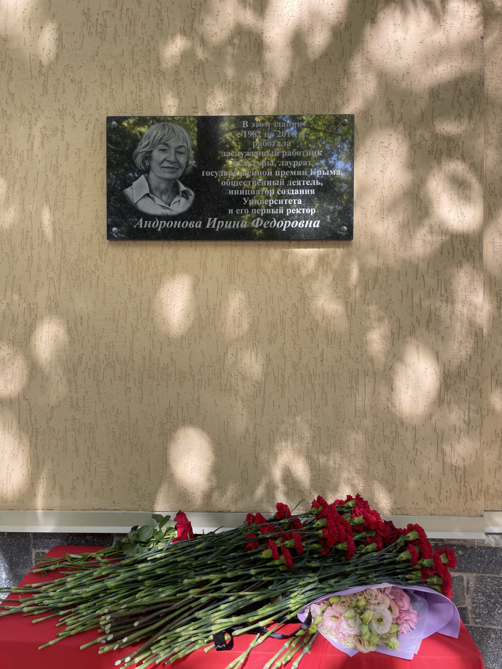 24 сентября на здании Крымского университета культуры, искусств и туризма (ул. Киевская, 39) была торжественно открыта мемориальная доска Ирине Федоровне Андроновой, основателю и первому ректору Крымского университета культуры, искусств и туризма, чья жизнь была посвящена служению культуре и искусству.