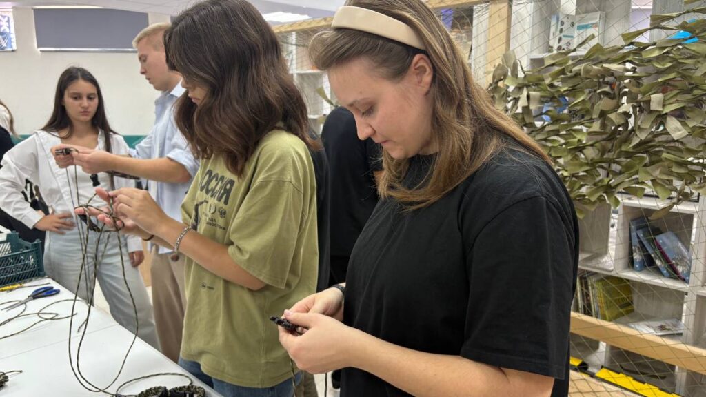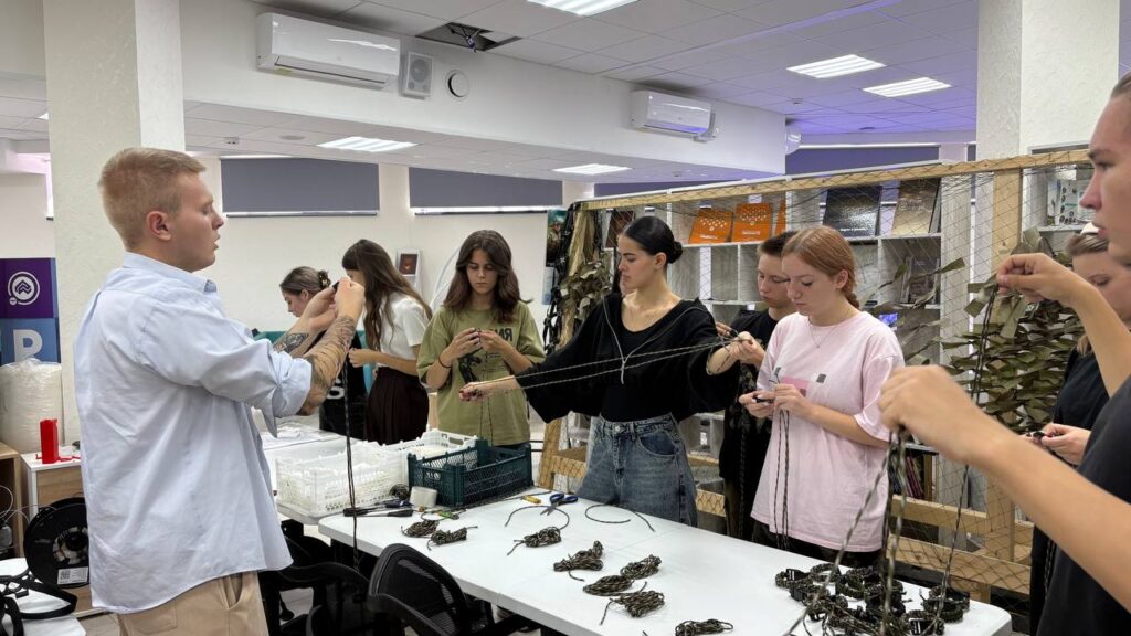 В рамках этого патриотического проекта студенты нашего Университета и Театрального колледжа посетили Ресурсный центр добровольчества. Это был не обычный экскурсионный день, а настоящая практическая помощь нашим бойцам на передовой. Ребята своими руками создавали то, что сейчас жизненно необходимо защитникам Отечества: сети для маскировки - каждый узелок, завязанный руками студентов, поможет укрыть технику и позиции наших военных от врага; тактические носилки— специальные медицинские носилки, которые позволяют быстро и безопасно эвакуировать раненого бойца с поля боя, а это уже надежда на спасение жизней; тактические браслеты — незаменимая вещь для каждого военнослужащего. Сплетенные из паракорда, они могут выдержать огромную нагрузку и в критической ситуации стать спасательным тросом.