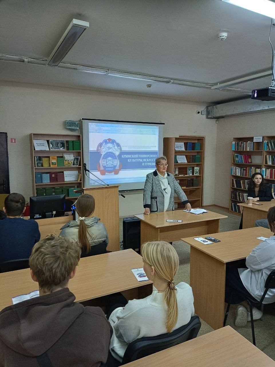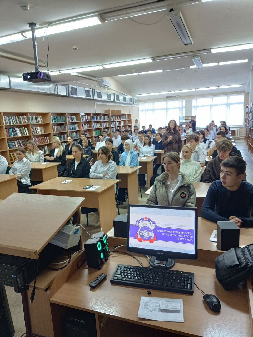 Крымский университет культуры, искусства и туризма провел познавательную встречу с учащимися Симферопольской академической гимназии. Мероприятие состоялось 20 октября и было направлено на знакомство старшеклассников с возможностями получения профессионального образования в сфере культуры и искусства.