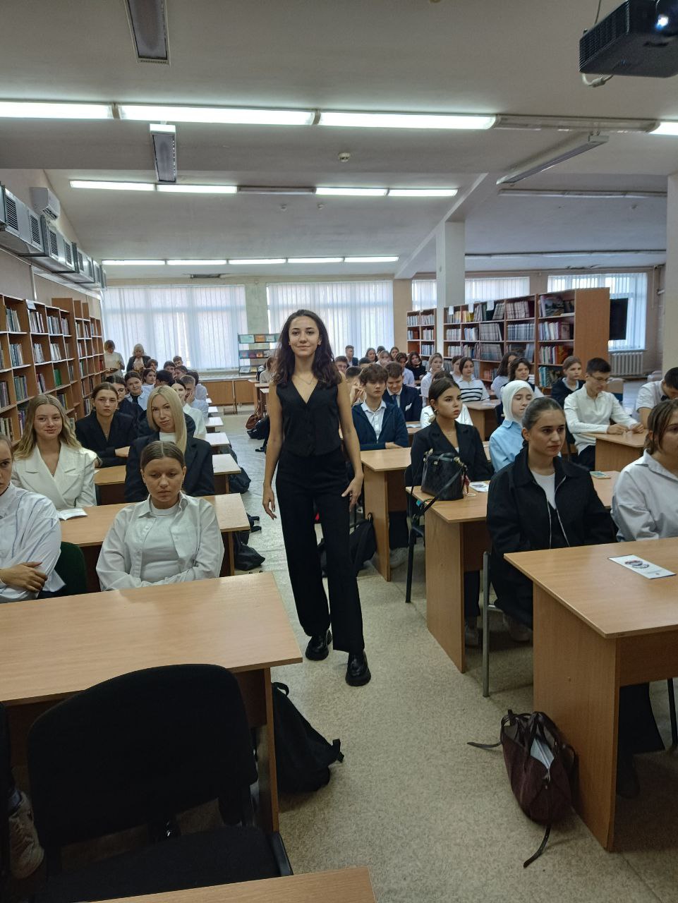 Особое внимание было уделено демонстрации творческих возможностей университета. Студентка Мелек Шарапова представила вокальный номер, позволивший гимназистам оценить уровень подготовки будущих специалистов.