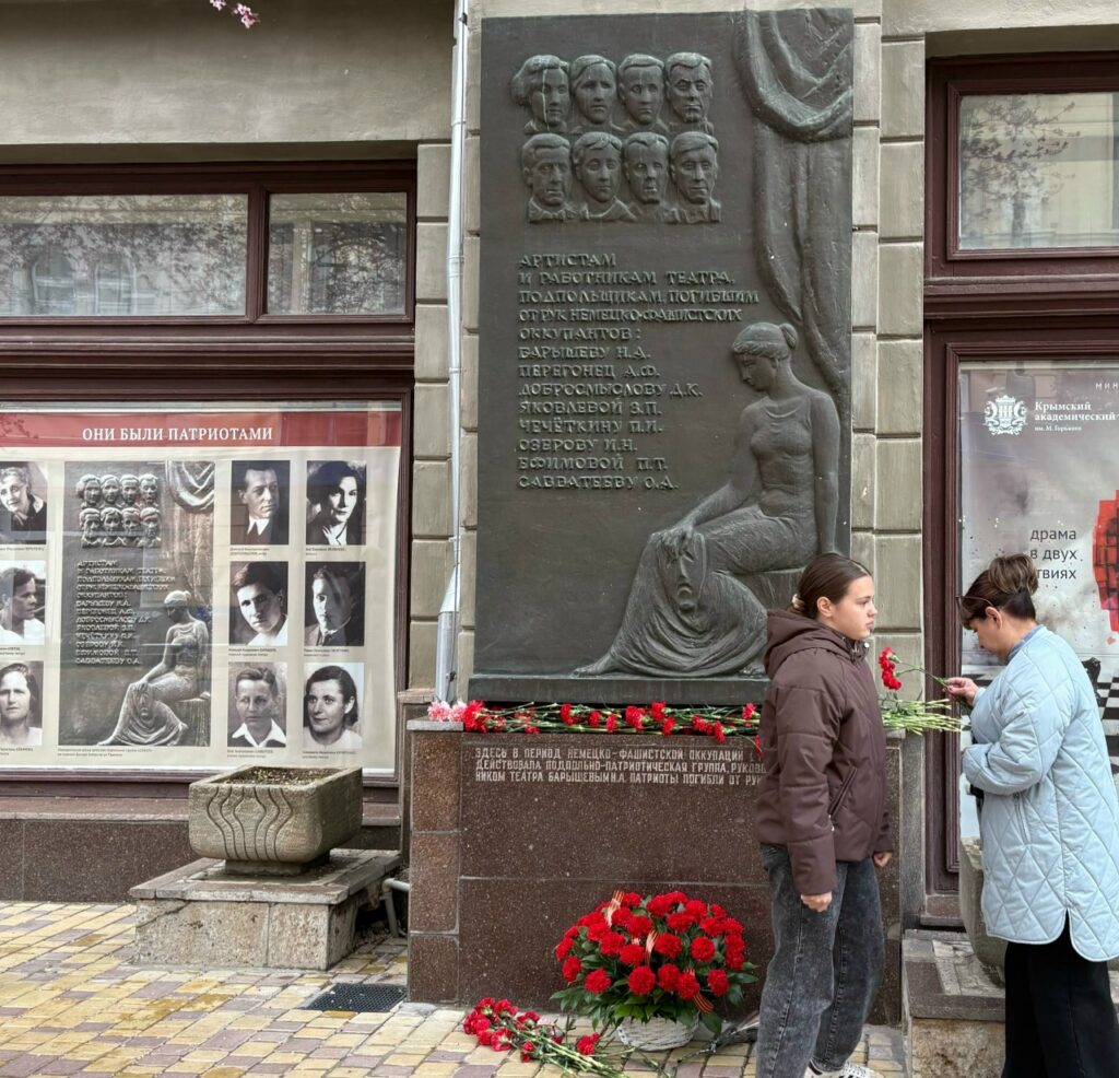 Центральным событием стала церемония возложения цветов к мемориальной доске на здании театра. Мемориальная доска — вечное напоминание о подвиге членов театральной подпольной группы «Сокол», действовавшей в Симферополе в годы оккупации.