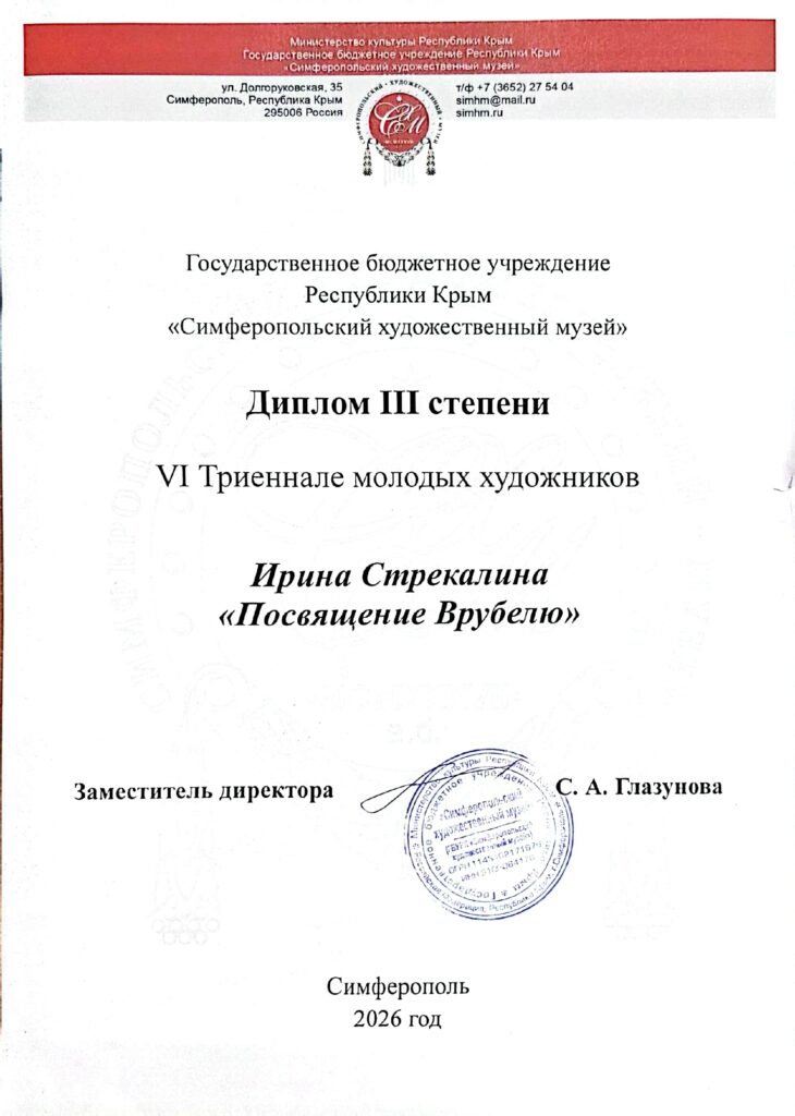 Ирина Стрекалина, студентка 3‑го курса профиля подготовки «Коммуникативный дизайн», завоевала диплом III степени за картину «Посвящение Врубелю».