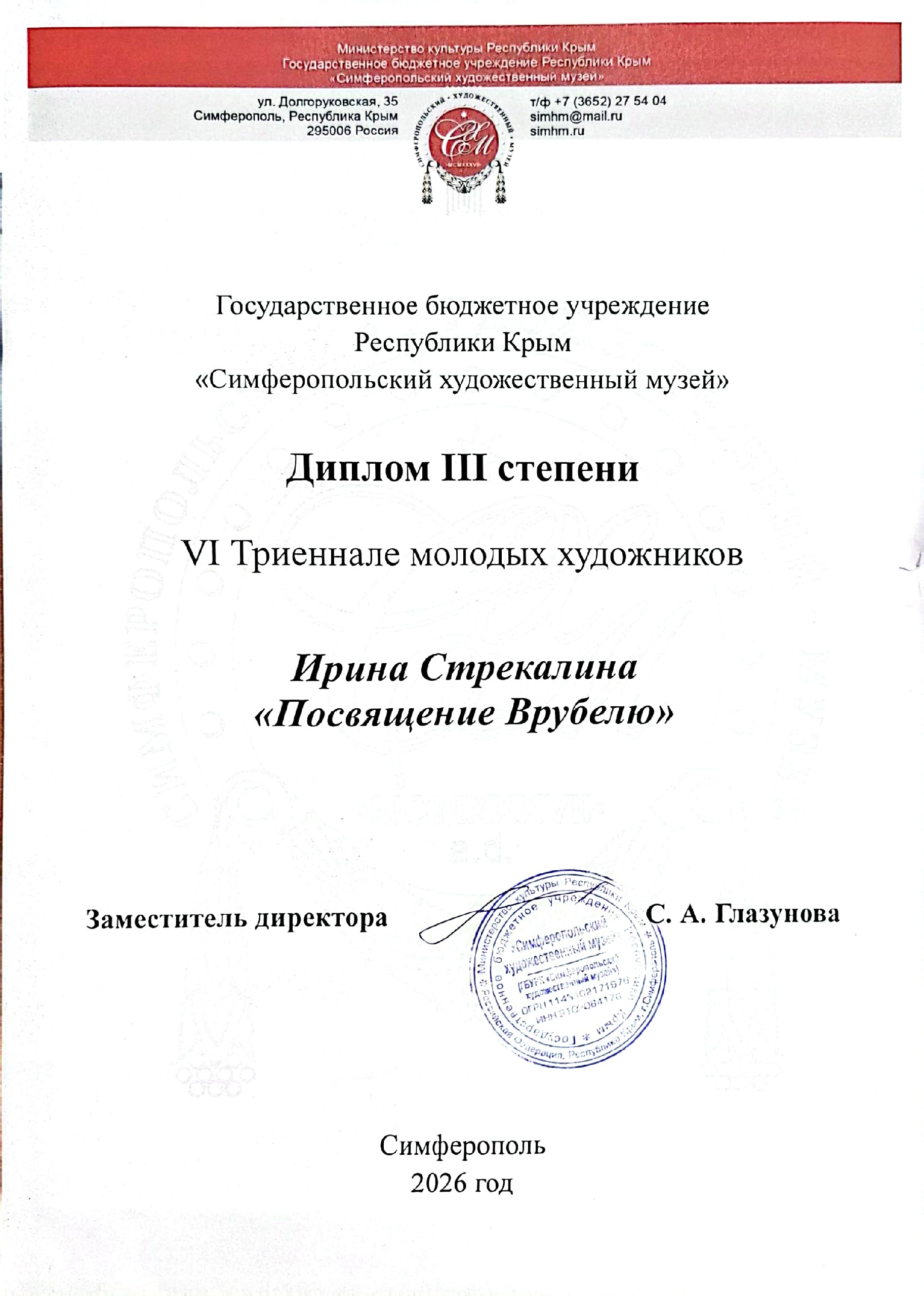 29 марта кафедра дизайна Крымского университета культуры, искусств и туризма приняла участие в VI Триеннале молодых художников. Выставка прошла в Симферопольском художественном музее и была приурочена ко Дню воссоединения Крыма с Россией. Это событие ещё раз подчеркнуло важную роль творчества в патриотическом воспитании молодёжи: через искусство студенты не только раскрывают свой талант, но и осмысляют культурное наследие региона, укрепляют связь с историей родной земли.