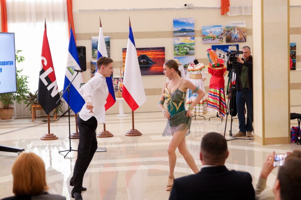 Гостей из Республики Никарагуа приветствовали студенты кафедры хореографии и сотрудники художественно-творческого управления: заместитель начальника ХТУ Ирина Руденко и культорганизатор ХТУ Идрис Шпот. Были представлены вокально-хореографическая композиция «Крымский вечер» (постановка доцента кафедры хореографии Натальи Дувановой) и зажигательная «Самба» (постановка преподавателя кафедры хореографии Дениса Власова).