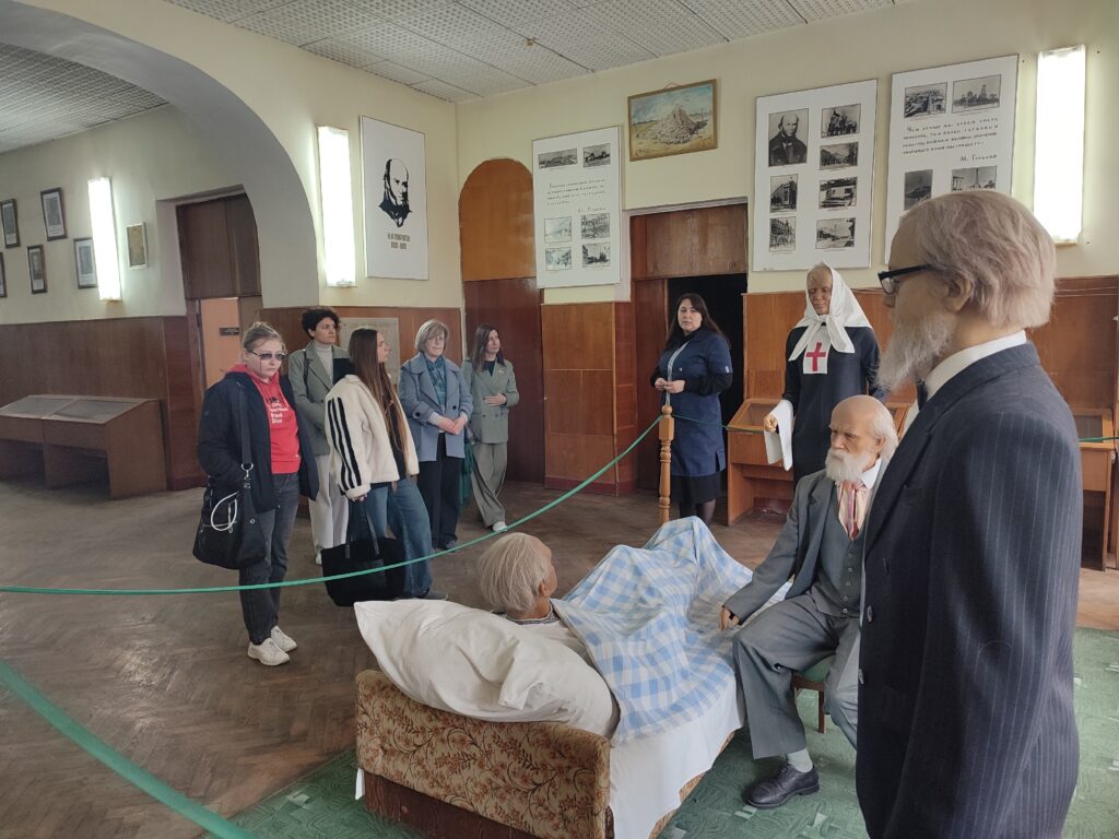 Под её руководством студенты осмотрели обширную экспозицию — в музее представлено около 1 500 экспонатов, узнали об истории становления хирургии в Крыму и познакомились с примерами того, как музейные коллекции можно интегрировать в образовательный процесс.