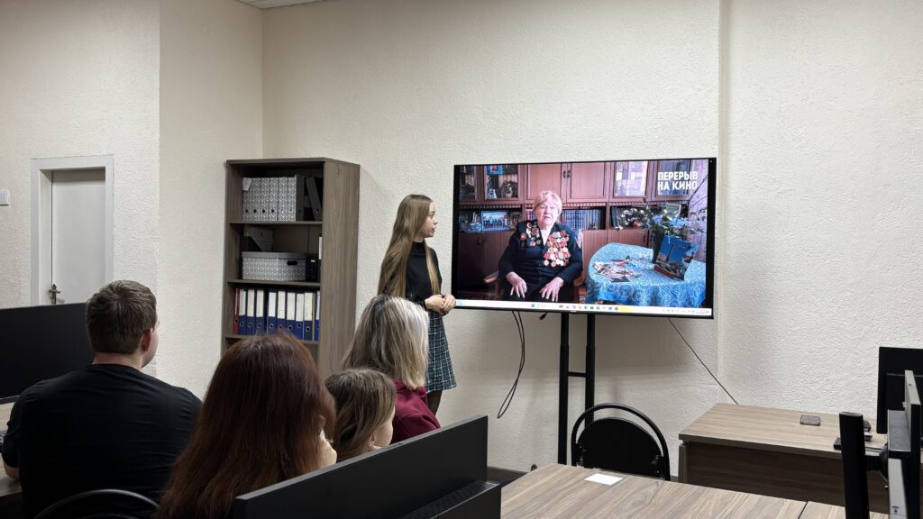 Всероссийский кинофестиваль «Перерыв на кино» фонда «Мост поколений» продолжает знакомить молодёжь с героическим прошлым страны. 12 декабря в стенах нашего университета состоялся особенный показ военно-исторических фильмов. Организацию мероприятия взяла на себя помощник ректора по молодёжной политике и патриотическому воспитанию А. В. Самойленко. Для студентов была подготовлена насыщенная программа из четырёх кинокартин, каждая из которых рассказывает о подвигах и судьбах героев Великой Отечественной войны.