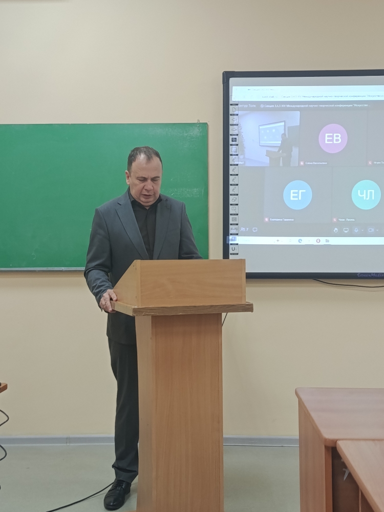 От имени ректора КУКИиТ Валерия Горенкина торжественную часть конференции открыл проректор по научной работе и информационной политике Александр Микитинец. Он отметил высокий научный и творческий потенциал участников, подчеркнув, что ключевыми целями мероприятия стали: обмен опытом и информацией по актуальным исследованиям в сфере культуры и искусства; выявление приоритетных направлений развития науки в творческом вузе; вовлечение обучающихся в научно-исследовательскую деятельность.