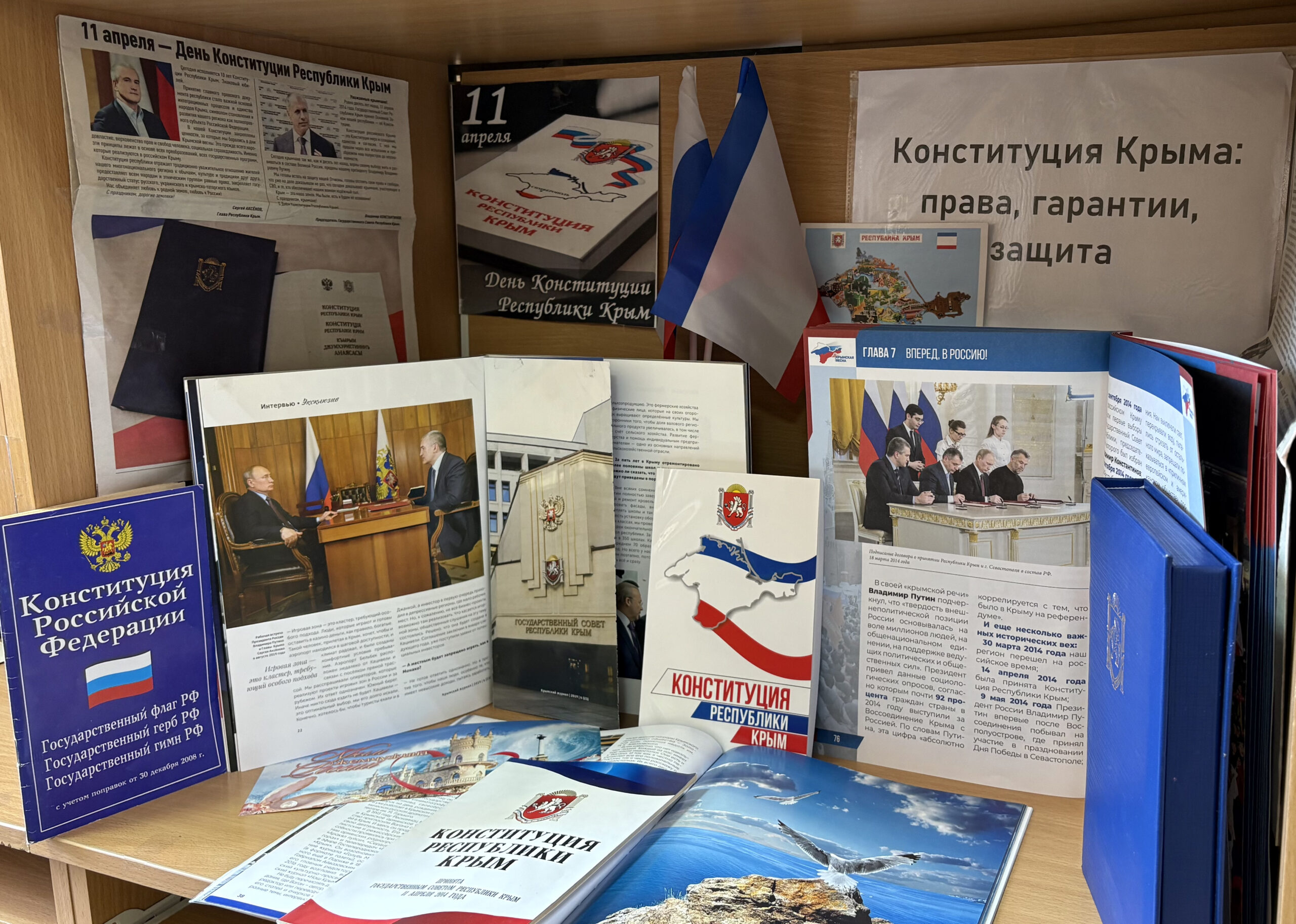 Дополнили программу тематические выставки. В научной библиотеке Университета открылась экспозиция «Гарант процветания Крыма», рассказывающая об истории создания Конституции и особенностях конституционного строя региона. В холле университета кафедра дизайна представила выставку плакатов. Инициатива призвана воспитывать у молодёжи любовь к родному краю и его истории, формировать национальное и гражданское самосознание. Руководили выставкой плакатов Усенкова Елена Владиславовна — член Союза дизайнеров России, старший преподаватель кафедры дизайна, и Миргородская Алёна Викторовна — специалист кафедры дизайна.