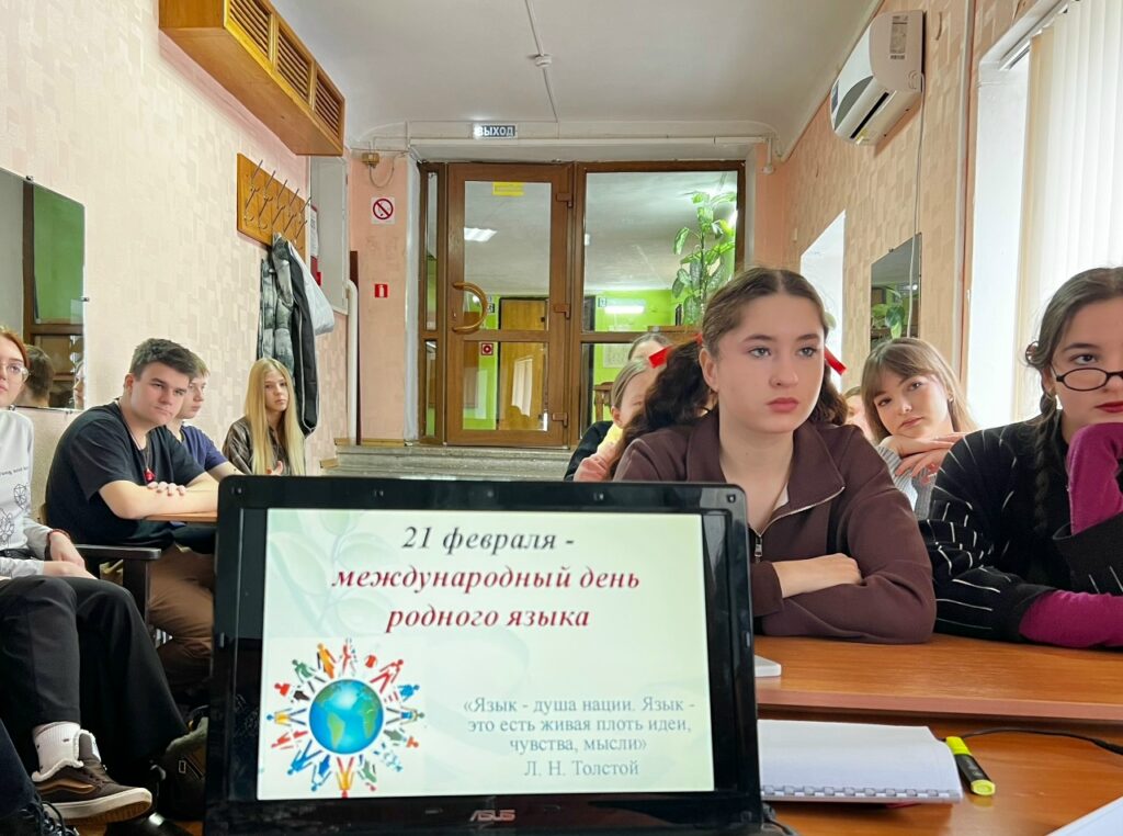 Параллельно в Театральном колледже КУКИиТ прошло специальное занятие «Язык — наше богатство» под руководством преподавателя Кушицкой Ольги Сергеевны. В ходе занятия обучающиеся колледжа: активно участвовали в дискуссиях о значении родного языка, делились мыслями о роли языка в современной жизни, вспоминали народные пословицы и поговорки и анализировали примеры из художественной литературы.